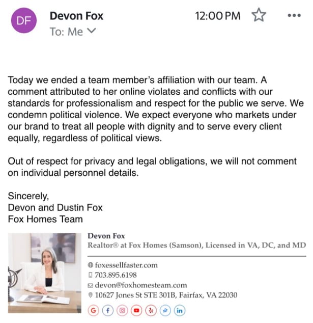 Within 24 hours of Kirk's death, an assistant dean at Middle Tennessee State University, a Carolina Panthers communications staffer, employees from companies ranging from Freddy's Frozen Custard to major airlines, and dozens of teachers across the country found themselves unemployed. Their crime? Posting their immediate, unfiltered reactions to social media platforms that they seemed to forget were public forums scrutinized by millions.
