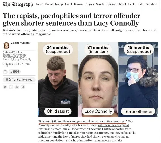 While the UK government constructs this digital panopticon to monitor citizens' thoughts about immigration, its justice system demonstrates a moral inversion that defies comprehension. The case of Lucy Connolly - a childminder with no prior criminal record - epitomizes this dysfunction.