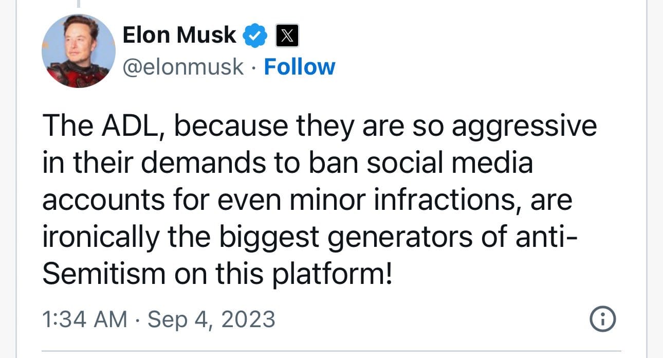 Images you provided show the escalating conflict between Musk and the ADL. While some criticism of the ADL has been hyperbolic, Musk raised legitimate concerns about: