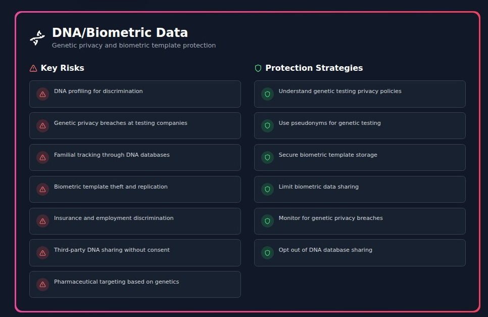 - DNA/Biometric Data Protection: Safeguarding genetic and biometric information