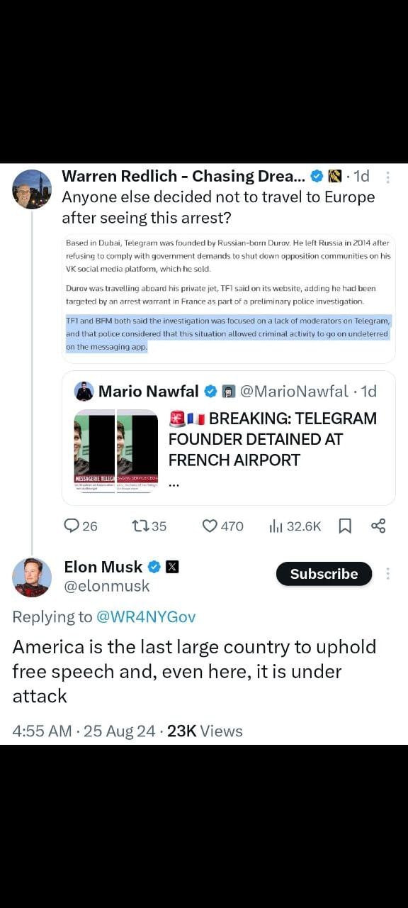 Pavlovski's post highlights his concern over France’s recent actions, which he describes as a "red line" being crossed. The arrest of Durov, as claimed by Pavlovski, is reportedly due to his refusal to censor speech on Telegram—a platform known for its hands-off approach to content moderation, similar to Rumble's own policies.