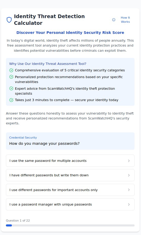- Identity theft risk assessment tools and checklists
