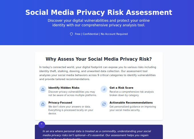 Privacy protection isn't about paranoia—it's about taking reasonable precautions appropriate to your risk level and lifestyle. Whether you're concerned about basic identity theft or need sophisticated protection against advanced threats, our specialized tools provide the guidance you need.
