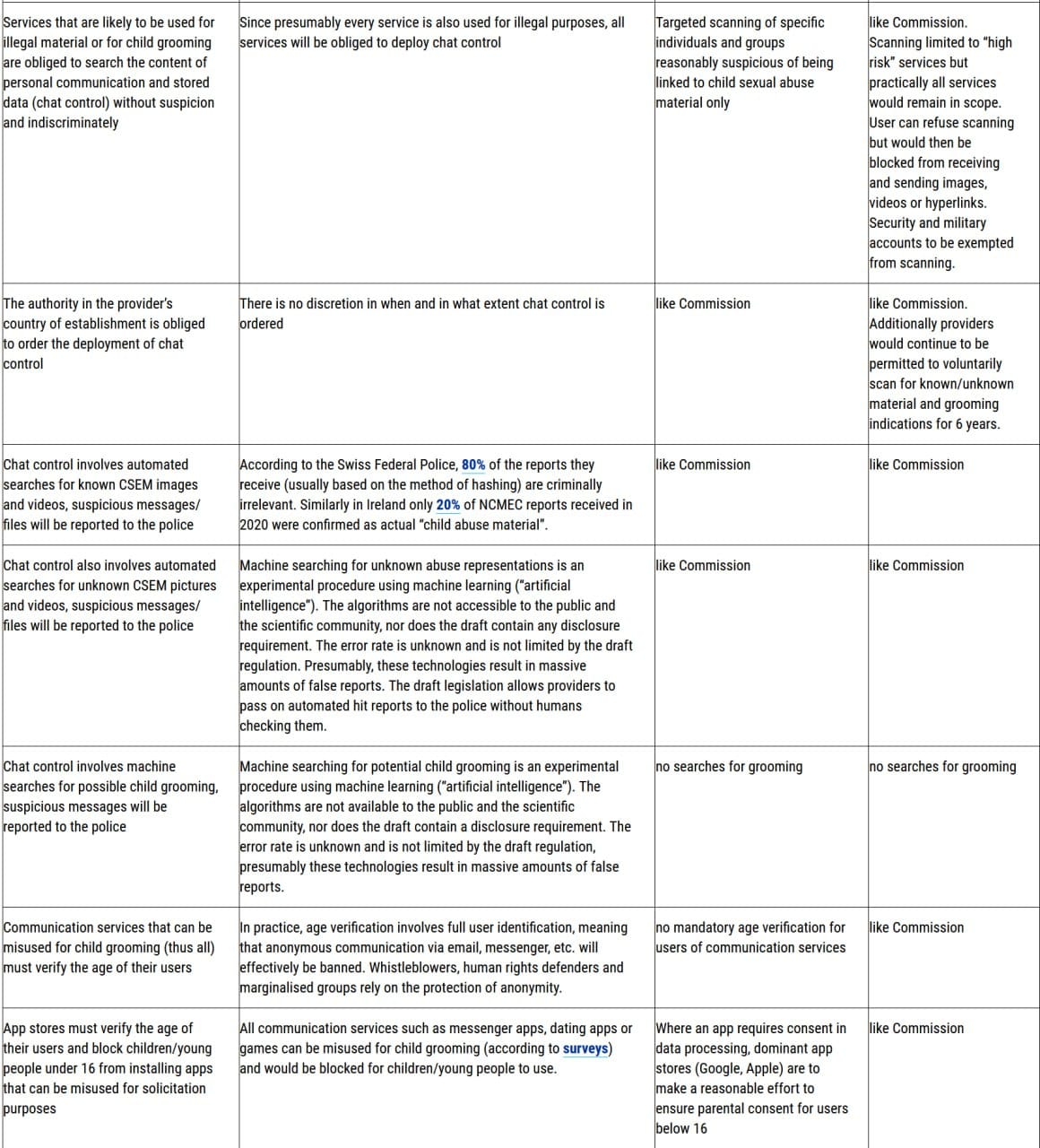 - Texts, images, videos and speech (e.g. video meetings, voice messages, phone calls) would have to be scanned