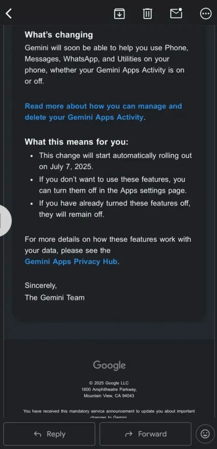 The initial backlash stemmed largely from Google's vague and poorly worded notification email. Many people found the message to be unsettlingly vague. Initially, it just informed users that Gemini would soon be able to "help you use" these critical apps, but it fell short on crucial specifics.
