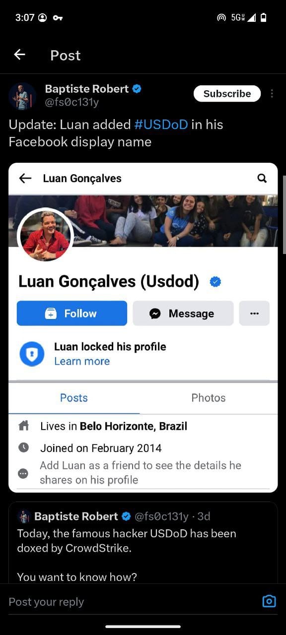Today, the famous hacker USDoD has been doxed by CrowdStrike.