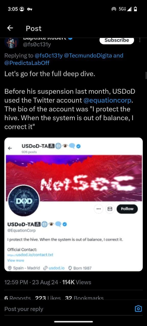 - Equation Group Connection: There is no direct evidence linking USDoD to the Equation Group, which is a sophisticated cyber espionage unit believed to be connected to the NSA. The Equation Group is known for its advanced cyber capabilities and has been active since at least 2001. The mention of USDoD being linked to the Equation Group seems to be a misunderstanding or misattribution.