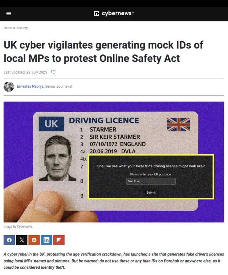 The UK's Online Safety Act has officially gone into effect, and the backlash is already taking creative forms. A software developer known as "Tim Je" has launched a provocative digital protest at use-their-id.com, creating AI-generated fake driving licenses featuring local Members of Parliament. While clearly satirical—and definitely not intended for actual use—this protest raises serious questions about the privacy implications of the UK's new age verification requirements.